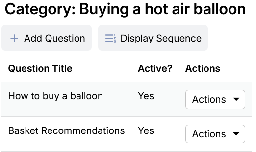 Click the Questions icon in the Maintain Column for the category.