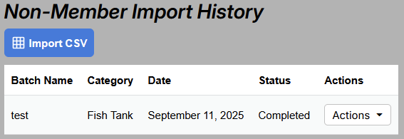 This will take you to the Non-Member Import History page, Select the Import CSV option.