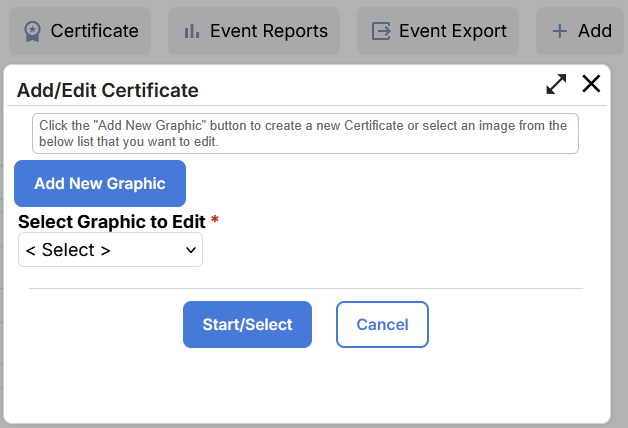 Navigate to the Control Panel>Website Tab>Events and from the Events Manager Page select the Certificates button to see the Add/Edit Certificate popup: