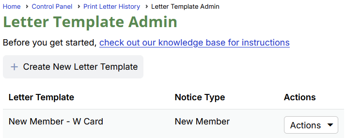 The Print Letters function allows organizations to print physical New Member and Membership Renewal notices to be mailed. This is intended as a way for organizations to send membership information to members that do not have an email address.